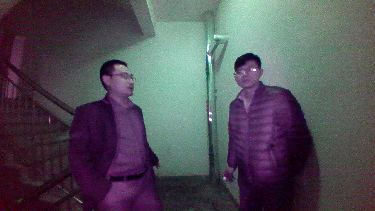 摄像机在微光环境下切换成夜视模式,画面转换成黑白模式,整体画面有噪点,人物较近时能清楚辨别,夜视总体效果表现一般。
