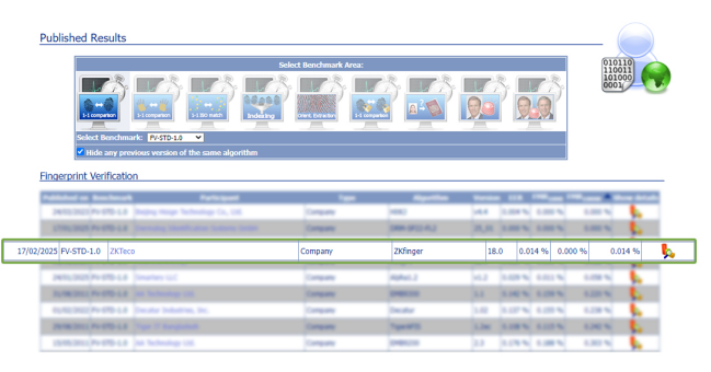 日前,在2025年度国际指纹识别竞赛FVC(全称为:Fingerprint Verification Competition)的
