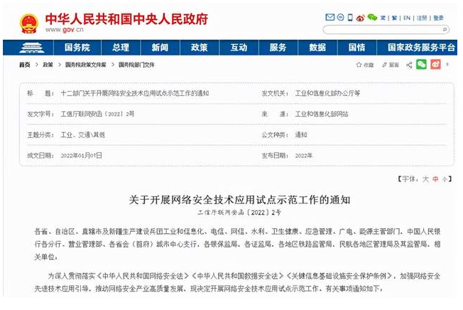 工信部等12部门开展网络安全技术应用试点示范工作
