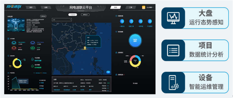针对园区设备点位多、乱、杂等问题,网电速联云平台支持分区域,分项目对设备进行分组管理,实现由大盘到项目到单个设备各个层级运行态势感知、数据统计分析和智能运维管理。