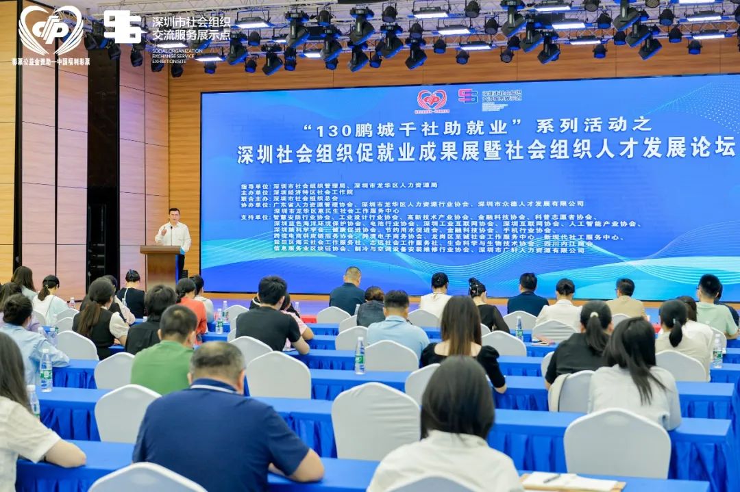 近日,“130鹏城千社助就业”系列活动之深圳社会组织促就业成果展暨社会组织人才发展论坛(以下简称“社会组织人才论坛”)在龙华区人力资源服务产业园顺利召开。本次活动由深圳市社会组织管理局、深圳市龙华区人力资源局指导,深圳经济特区社会工作院和深圳市社会组织总会联合主办,深圳市龙华区人力资源服务产业园、广东省人力资源管理协会、深圳市龙华区人力资源行业协会、深圳市众德人才发展有限公司共同协办,深圳社会组织交流服务展示点相关负责人和“20+8”产业集群相关社会组织代表等60余人参与本次活动,为社会组织人才建设贡献智慧。