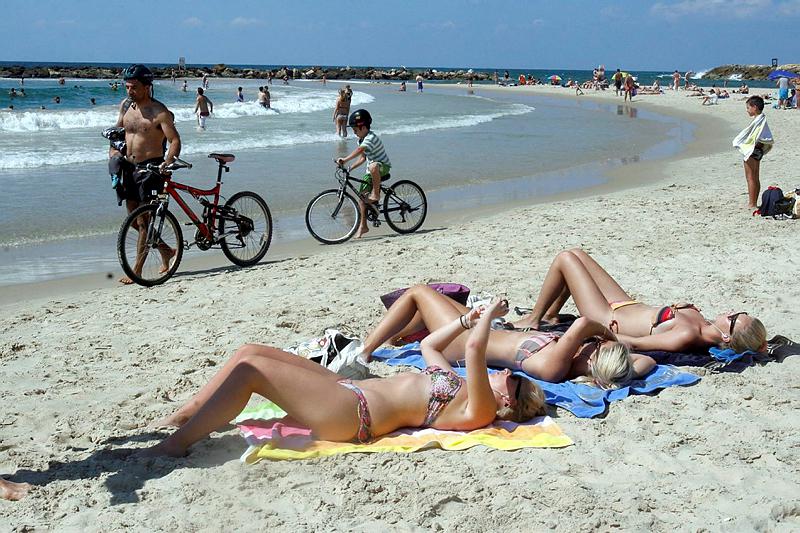 这些在特拉维夫海滩尽情玩水的以色列美人们。噢,美人还爱晒日光,放肆享受这夏日炎炎的日光浴。