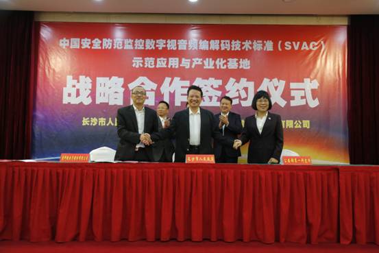 11月12日,长沙市人民政府、公安部第一研究所、国科微电子在长沙签署建设“中国安全防范监控数字视音频编解码技术标准(SVAC)示范应用与产业化基地”战略合作协议,这意味着首个SVAC示范应用与产业化基地落户长沙。长沙市委副书记、市长胡衡华,公安部第一研究所所长仇保利,公安部第一研究所副所长、SVAC标准第一起草人陈朝武,长沙市副市长唐向阳、秘书长谭勇,国科微电子股份有限公司董事长向平、总经理傅军等出席了签约和授牌仪式。