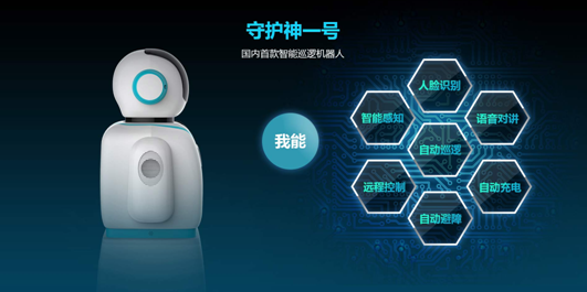 在2015年深圳安博会上亮相的国内首款智能巡逻机器人——守护神一号就是这样一款能看,能听,能说,有感知,可互动,带智慧的智能型服务机器人,是安防技术与人工智能技术深度融合的结晶。