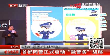 “首都网警”执法账号在2011年开始网上警示执法尝试。采取“面对面”的形式,对网络诈骗、网络色情、网络赌博、网络谣言等轻微违法犯罪直接警示教育违法网民,维护网络秩序。此次论坛上,本着“让数据多跑路,让群众少跑腿”的原则,首都网警首次提出了网警“微警务”理念,正式启动了首都网警“微警务”战略,并详细介绍了第一批纳入“微警务”平台的“反诈骗查询举报平台”、“首都等级保护学考系统”等模块,以更方便、更快捷的方式服务于广大网民和互联网企业。