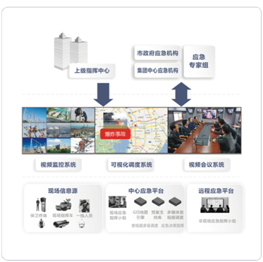 应急指挥系统并非是单一的指挥手段,而是辅助责任单位或部门梳理其自身的需求,建立必要的应对机制。大华股份依据中华人民共和国人民政府颁布的国家总体应急指挥预案指导文件,深入研究应急处突的全过程,推出个性的可视化应急指挥调度解决方案,实现多部门的联动调度,指挥畅通无阻、高效,且全程“可视化”。