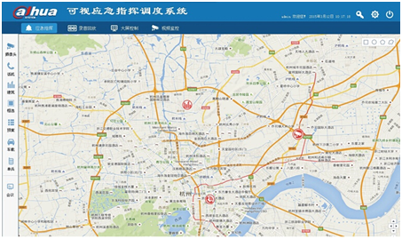 大华可视化应急指挥调度系统基于通信网络、智能分析、GIS等技术,融合了通信调度、视频监控、视频会商和动力环境等各类信息资源,建立了全程可视化综合决策指挥系统,通过对本区域、跨区域、多部门的联合指挥,实现了对突发事件的快递上报、统一部署和及时处置,用户可快速、方便、全面的了解现场情况及事件进展,提高了应急响应与决策指挥的能力和效率。
