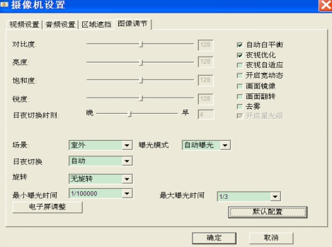 在一些郊区、乡镇等没有城区市区这么好的光照环境则需要对“日夜切换时刻”进行调节,如果有些许光,可以把灵敏度调到最左边也就是最晚,这样对于晚上全彩的效果会有很大的提升;如果没有一点光照的晚上则可以把灵敏度调到最右边,在光线较暗的时候红外灯会开启,呈现出来清晰的黑白图。
