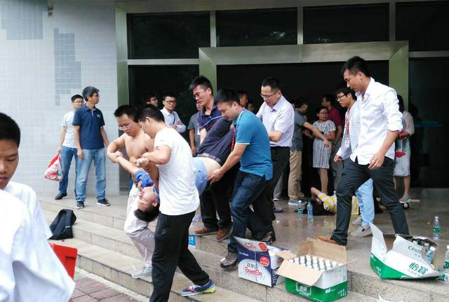 2016年9月2日中午11:50左右,W1-A栋4楼突发“消防气体灭火系统”误喷而导致刺激性气体泄漏,不断有晕倒的人从大厦中被抬出,而当所有人都惊恐万分的往外走时,一个光着膀子的小伙子,深圳达实信息技术有限公司的员工李旭峰,成了一位勇敢的逆行者。