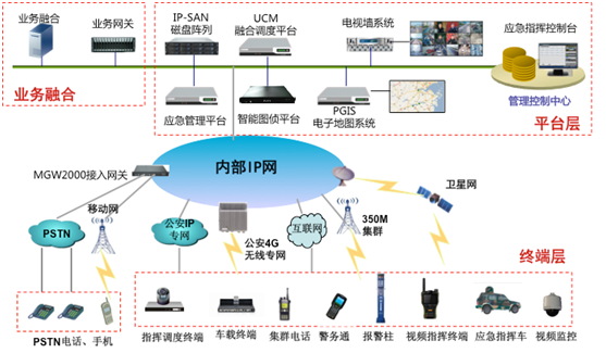 通过多业务融合扁平化指挥系统的建设,在重大警情发生后,通过有线无线通信、视频指挥与监控图像系统、GPS卫星定位和地理信息系统的综合应用,结合移动运营商的手机定位技术,可以快速准确地实施指挥调度,第一时间形成对现行违法犯罪的有效堵控,第一时间处置突发性公共事件,第一时间服务需要救助的群众。
