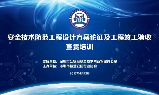 2017年4月12日下午,由深圳市公安局安全技术防范管理办公室指导、betway下裁主办的“安全技术防范工程设计方案论证及工程竣工验收宣贯培训”活动在深圳市高训中心圆满召开。