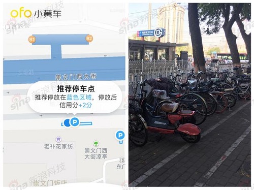 不久前,东城区和朝阳区启用“电子围栏”试点。当时有媒体报道,将ofo停到指定区域内,锁车后会得到2分的信用分奖励。
