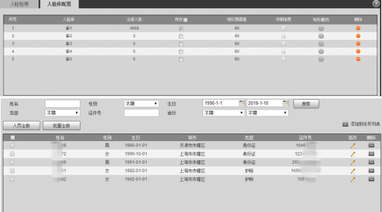 睿智系列人脸网络摄像机支持万级脸库,并支持最多5个人脸库管理,不同的人脸库可以设置独立的布防时间,管理更方便。也可以对库中图像进行特征搜索,查询更方便。